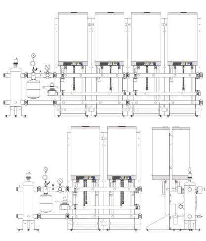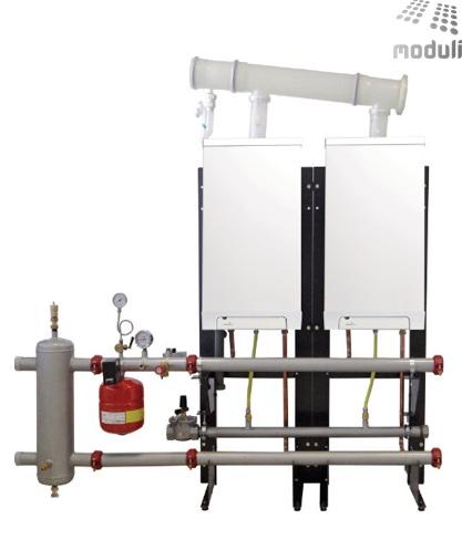 I sistemi termici modulari sono realizzati assemblando due/sei generatori termici a condensazione INTERGAS tipo KOMPAKT SOLO HR 35/40. Ideale per condomini, strutture turistiche, strutture commerciali, aziende. Alto rendimento: Il modulo termico ècomposto da caldaie dalle prestazioni elevate Modulazione costante e continua dal 3% al 100% (modello 250 kW) Ottimizzatore sequenza accensioni, priorità o funzionamento parallelo per la produzione di acqua calda sanitaria, programmazione orari giornalieri di attivazione riscaldamento e A.C.S. Possibilità di aumentare il rendimento con quadro elettronico di gestione cascata e utenze servite Altissima affidabilità di funzionamento: Elevata riserva di potenza in caso di guasto grazie al frazionamento su più generatori. Versatilità d’installazione: disponibili in linea e schienati. Bassissimo inquinamento: le emissioni inquinanti sono al di sotto delle più restrittive leggi europee Monitoraggio costante del sistema: gestione in remoto con connessionedi rete (con sistema REGDIN8). Versioni costruttive: Sistemi termici modulari in linea composti da 2 a 6 generatori termici INTERGAS Kompakt Solo HR idonei per il montaggio in locale tecnico. Sistemi termici modulari schienati composti da 2 a 6 generatori termici INTERGAS Kompakt Solo HR idonei per il montaggio in locale tecnico. Sistemi termici modulari in linea composti da 2 a 4 generatori termici INTERGAS Kompakt Solo HR completi di modulo di contenimento coibentato su base autoportante idonei per il montaggio all’esterno. Sistemi termici modulari schienati composti da 2 a 6 generatori termici INTERGAS KOMPAKT SOLO completi di modulo di contenimento coibentato su base autoportante idonei per il montaggio all’esterno.