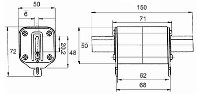 Corpo in steatite ad alta resistenza termica e meccanica. Gli elementi fusibili di rame o rame argentato sono saldati alle lame di contatto, inseriti nel corpo fusibile chiuso con guarnizioni e placche di aggancio, il tutto è riempito con sabbia di quarzo. I fusibili NH Kombi sono dotati di doppio dispositivo di segnalazione intervento posto nella parte centrale e nella parte superiore. Potere di interruzione: 100/120kA. Fusibili NH kombi e NH/I 500V - TIPO gG. Grandezza: NH-2C
