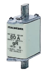 Corpo in steatite ad alta resistenza termica e meccanica, con ampia camera per l’estinzione dell’arco. Gli elementi fusibili sono in rame argentato saldati alle lame del contatto. L’elemento estinguente dell’arco è sabbia di quarzo. Per protezione di semiconduttori. Fusibili NH SERIE HRC - TIPO gR/aR. Grandezza :NH-00/00C