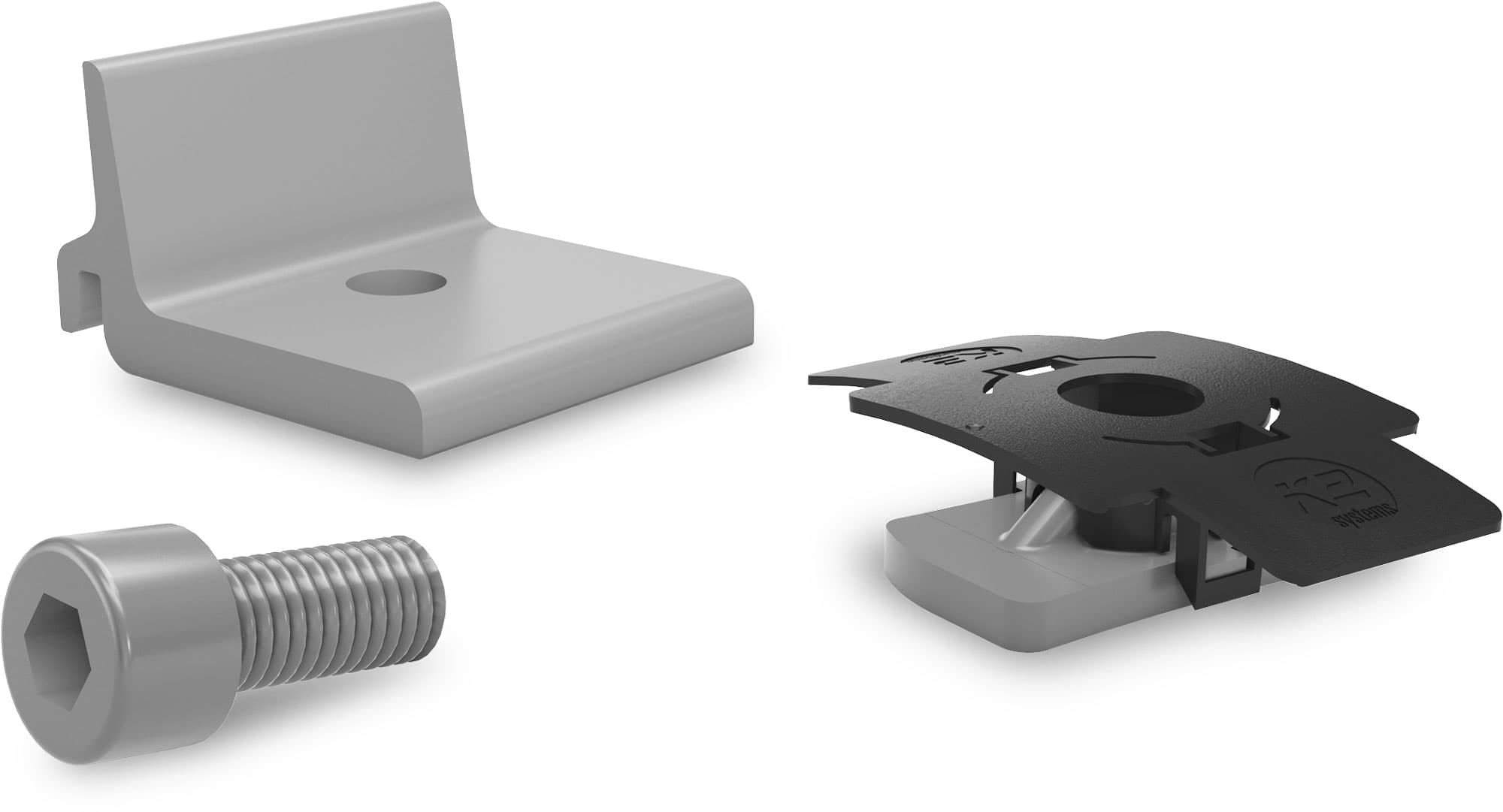 Come connettore per soluzione ad incrocio per K2 SingleRail 36 e 50 e K2 CrossRail 36 e 48. Viti e dadi inclusi. Materiale: Alluminio EN AW-6063 T66, acciaio inox A2