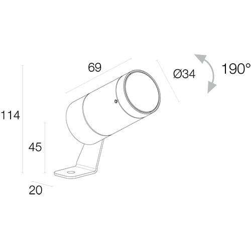 Proiettore da esterno; su superficie (soffitto, parete, pavimento, picchetto); 3,5W. 3000 K. 8°-28°. Colore Nero. 224 lm