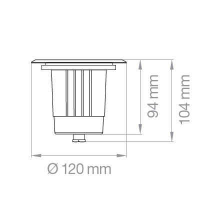 FARETTO CARRABILE tondo GU10 230V - Faretto carrabile in alluminio e acciaio inox #304 con attacco GU10. Cassaforma ø103mm H120mm incluso. Lampada non incluso. Consigliato utilizzo lampada alta dissipazione idonea per apparecchi stagni. Lampo cod.DIKLED5WR230.