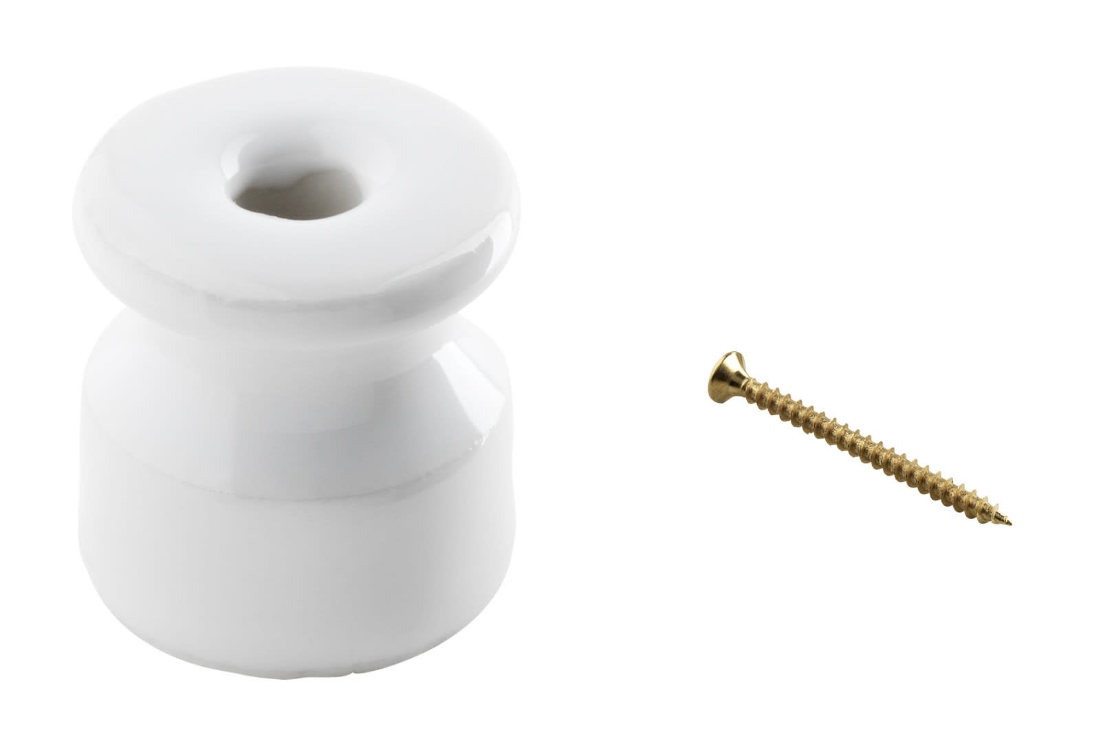 c'era una volta, vintage Isolatore maxi ELITE in porcellana bianca (ideale per treccia cotone 3G2,5mm2/4G1,5mm2) diametro 26 mm - H 33 mm - Con vite ottonata
