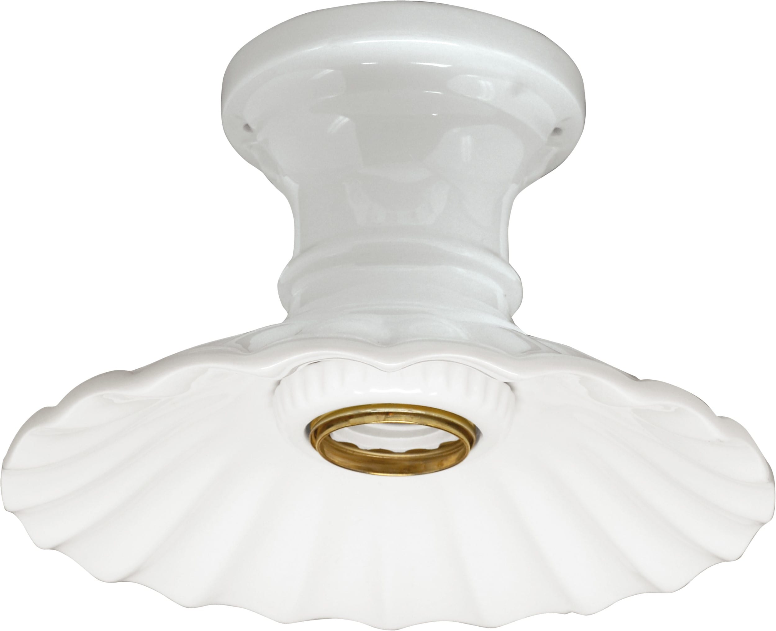 SERIE CLASSIC - IN PORCELLANA BIANCA Spot diritto a parete o soffitto - Attacco E27 - Potenza 60W - Grado di protezione IP 20 Con ghiera in porcellana bianca - Con piatto onda diametro 20 cm in porcellana bianca