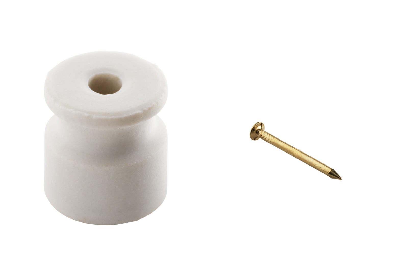 c'era una volta, vintage Isolatore in cordierite diametro 18 mm - H 20 mm - Con chiodo ottonato