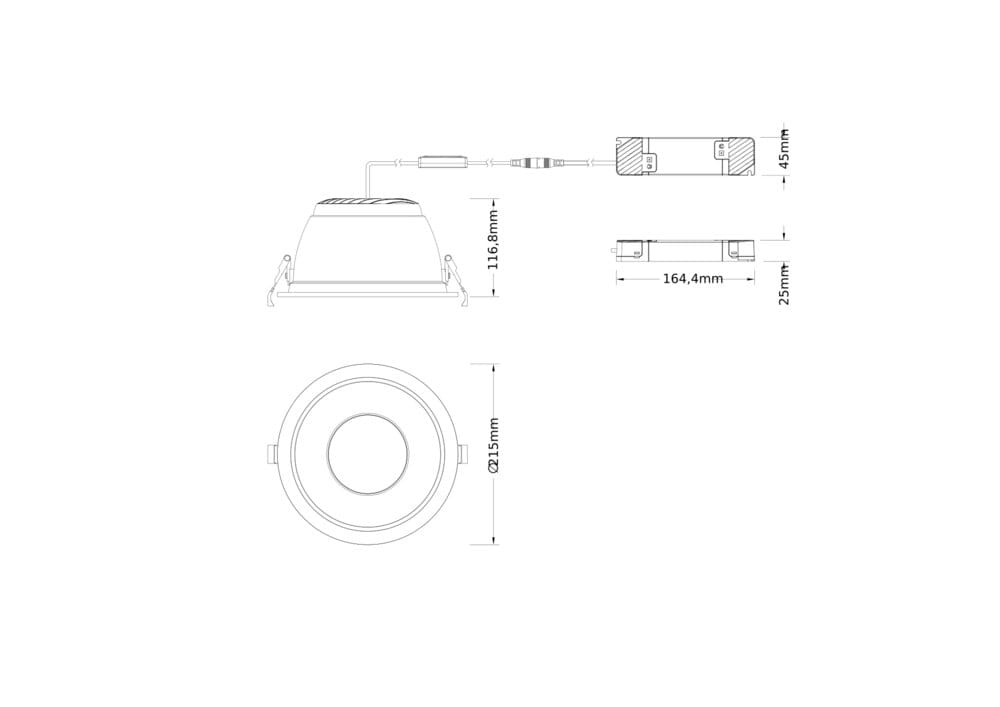 Apparecchi downlight con corpo in alluminio, elevata efficienza luminosa e basso abbagliamento, driver esterno DALI-2. Caratteristiche del prodotto: Apparecchio predisposto per IoT con tecnologia DALI-2. Apparecchi di illuminazione in alluminio con 4 diversi fori e riflettore con finitura a specchio UGR ≤ 19. Distribuzione della luce molto omogenea. Driver esterno con funzione Multi Lumen fino a 5000 lm. Funzione multicolore. Colore di illuminazione uniforme ≤ 3 SDCM. Durata (L70/B50) 100.000 ore a 25 °C. Vantaggi del prodotto: Apparecchio adatto per VIVARES e altri sistemi di gestione della luce DALI-2. Con le versioni DALI sono possibili altri servizi come il monitoraggio energetico e la manutenzione remota. Distribuzione omogenea della luce e riduzione dell'abbagliamento UGR ≤ 19. Risparmio energetico grazie a un'elevata efficienza del sistema: fino a 120 lm/W. Altamente versatile grazie alle funzioni Multi Select. Elevato indice di resa cromatica CRI > 90. Driver esterno per maggiore flessibilità e facilità di installazione. Possibilità di cablaggio passante tramite accessorio aggiuntivo della CONNECTOR BOX. Tipo di protezione: IP44. Installazione facile grazie al collegamento veloce. Ulteriori varianti disponibili con driver DALI-2, driver Zigbee o EMERGENCY CONVERSION KIT. Aree di applicazione: Sostituzione diretta di apparecchi da incasso con lampade fluorescenti. Uffici, sale conferenza. Aree di accoglienza, ingressi, corridoi, ascensori. Apparecchiatura / Accessori: Disponibili opzioni di SURFACE MOUNT FRAME. Cavo di sicurezza per apparecchi incluso. Dispositivo di controllo esterno incluso. Adatto per l'uso con scatola di conversione di emergenza separata. Consigli per la sicurezza: Tutti i collegamenti elettrici devono essere effettuati da personale qualificato.. Attenzione, rischio di scosse elettriche.. Gli apparecchi di illuminazione non sono adatti alla copertura con materiale termicamente isolato..