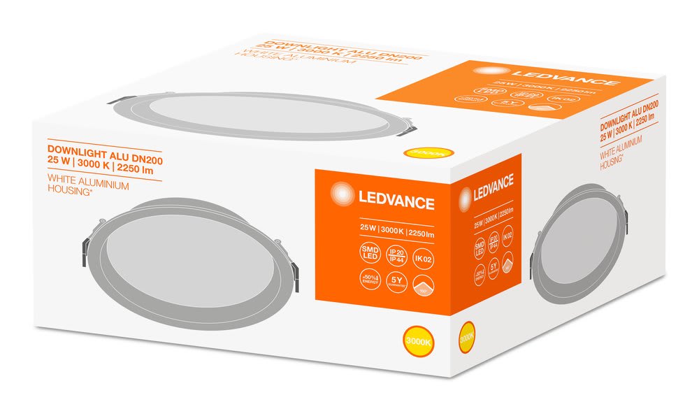 LEDVANCE - LDVDWL25830G2 DL ALU DN200 25W/3000K WT IP44 LEDV - DWL25830G2
