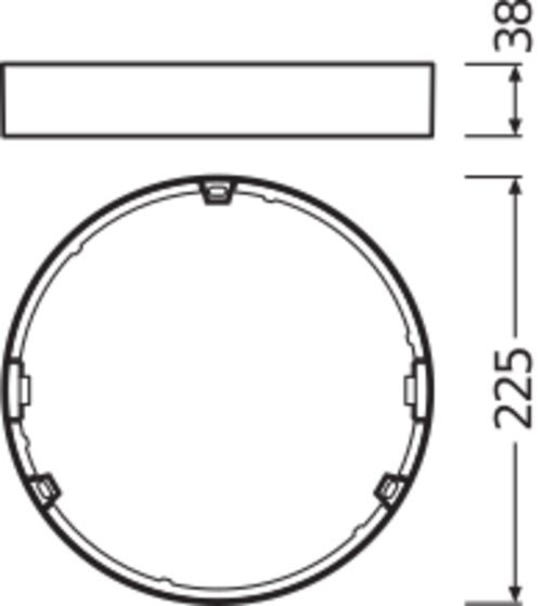 Cornice di montaggio a plafone, forma rotonda. Caratteristiche prodotto: Bassa profondità di montaggio. Robusto corpo in policarbonato. Accessori di montaggio inclusi. Vantaggi prodotto: Ingresso del cavo su un lato per una connessione elettrica a basso profilo. Installazione semplice grazie allo spazio per il foro. Aree applicative: Illuminazione generale. Aree pubbliche. Scale. Corridoi. Hall. Negozi.