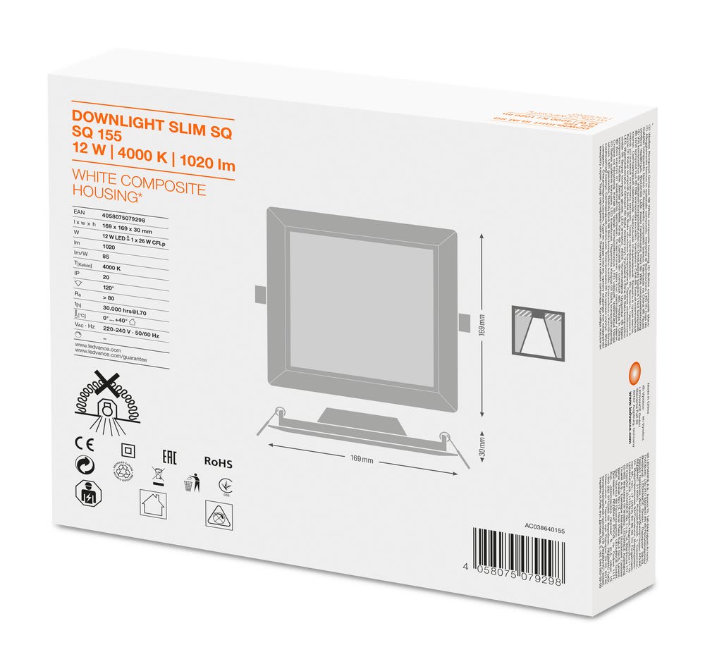 LEDVANCE - LDVDWLSSQ15512840G2 DOWNLIGHT SLIM SQUARE 155 12 W 4000 K WT - DWLSSQ15512840G2