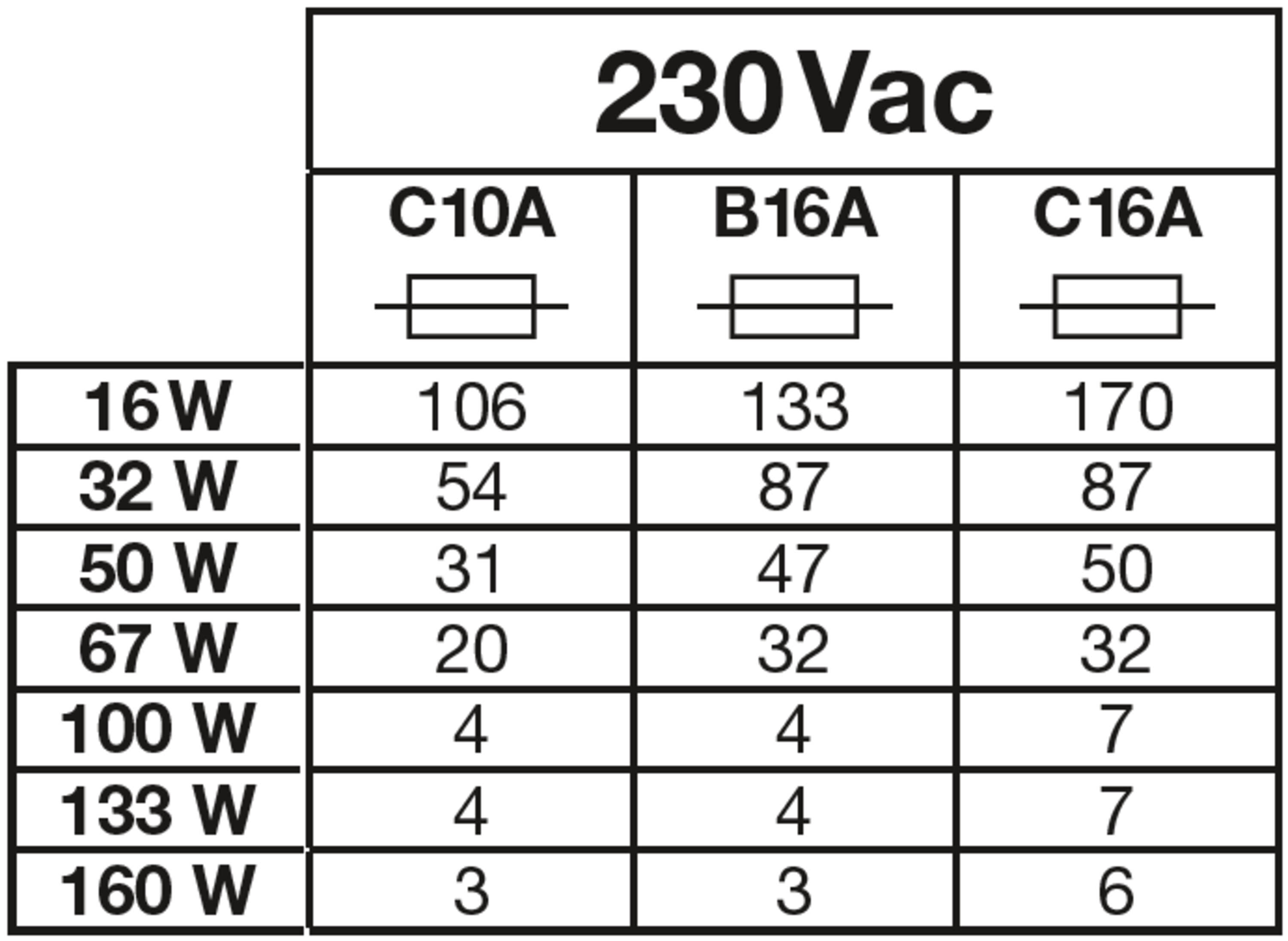 Max. numero di apparecchi per interruttore magnetotermico C16: