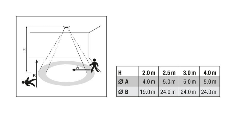 Dispositivo di ingresso DALI-2, rilevatore di presenza a infrarossi con rilevamento del movimento fino a 24 m . Caratteristiche del prodotto: Sensore di luce e presenza certificato DALI-2 per installazione a soffitto. Rilevamento di presenza tramite elemento passivo IR. Altezza di rilevamento fino a 4 m. Ampia area di rilevamento del movimento fino a 24 m. Indicatore di funzione con LED. Vantaggi del prodotto: Sensore di luce fino a 2000 lx. Installazione semplice e veloce tramite clip a molla. Alimentazione bus DALI integrata (non e necessario il collegamento alla rete). E possibile collegare piu sensori ad una linea DALI. Puo essere integrato in sistemi di illuminazione e di gestione degli edifici che supportano i sensori DALI-2. Compatibile con il sistema di gestione della luce LEDVANCE VIVARES DALI. Include l'accessorio otturatore per ottimizzare l'area di rilevamento del sensore. Aree di applicazione: Parcheggio sotterraneo. Parcheggio multipiano. Aree di stoccaggio e pausa. Scale.