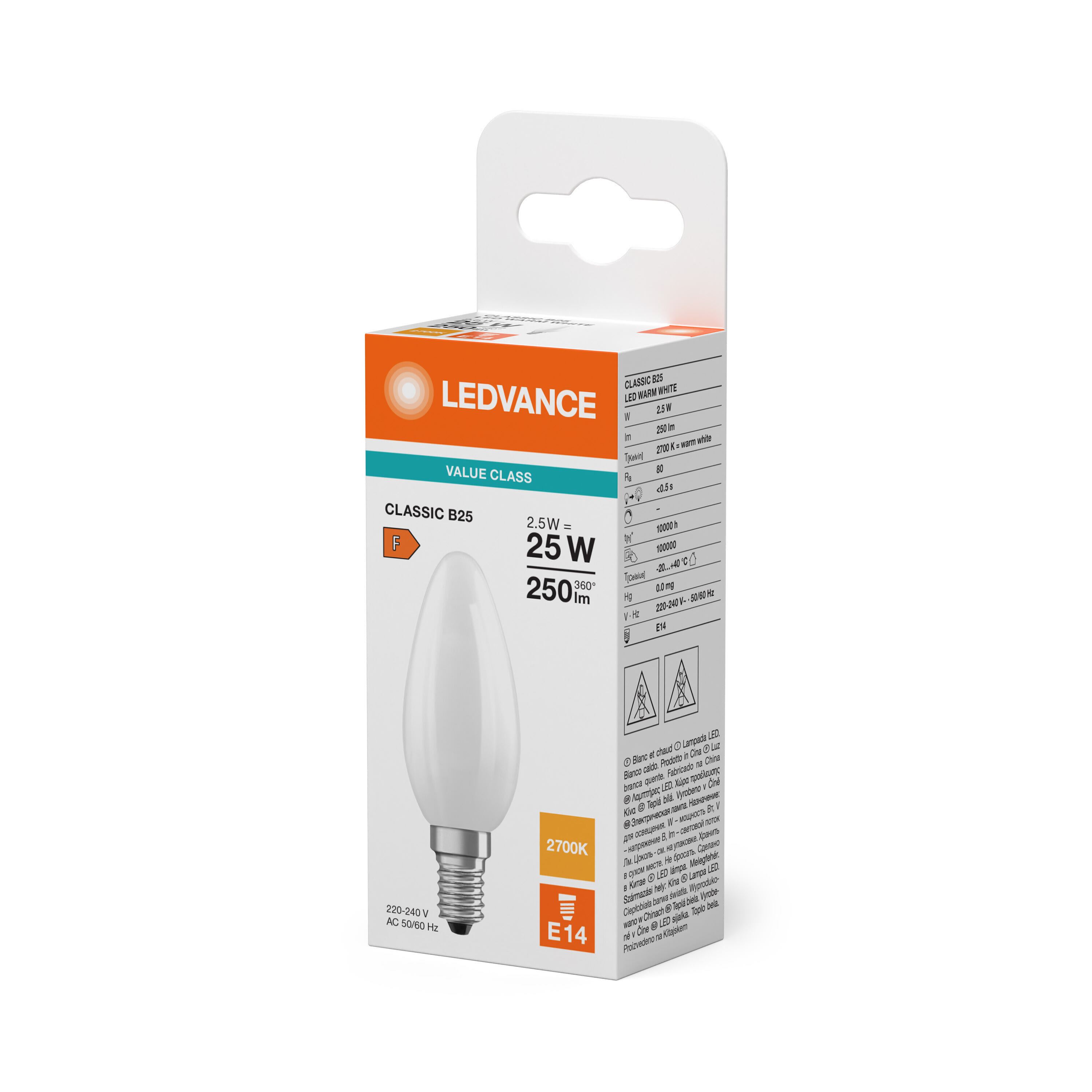 LEDVANCE - LDVVCB25827ME11 LED CLB25 2.5W 827 FILFR E14 V LEDV - VCB25827ME11
