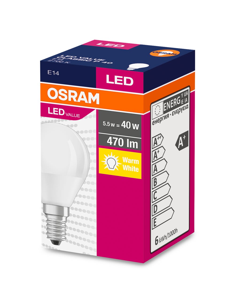 LEDVANCE - LDVVCP40827SE1G8 VALUECLP40 4,9W/827 230VFR E14 FS1 OSRAM - VCP40827SE1G8