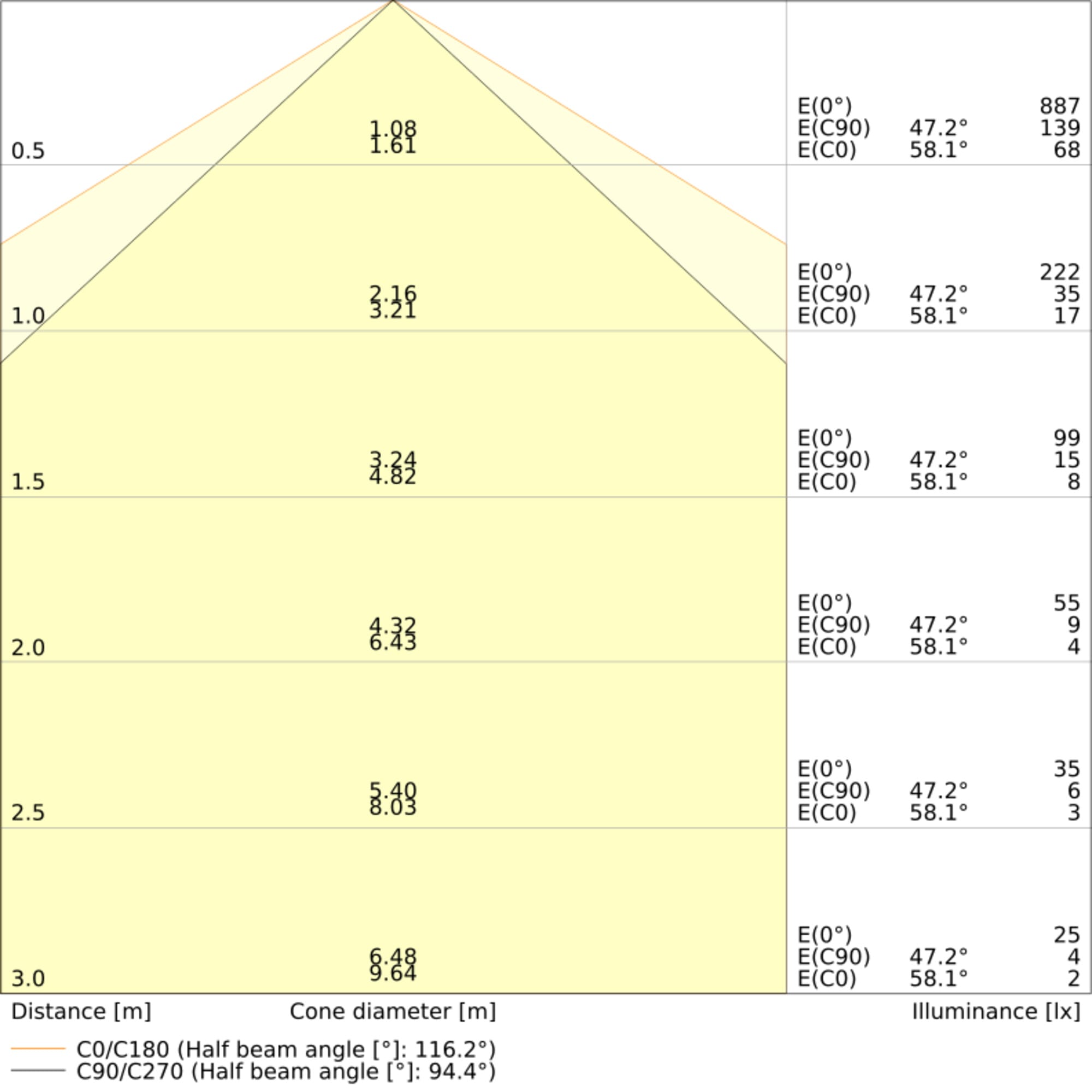 Angolo del fascio luminoso: