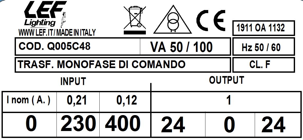LEF LIGHTING SRL - LEFQ005C48 T.M. 50VA 230.400V / 24.0.24V - Q005C48