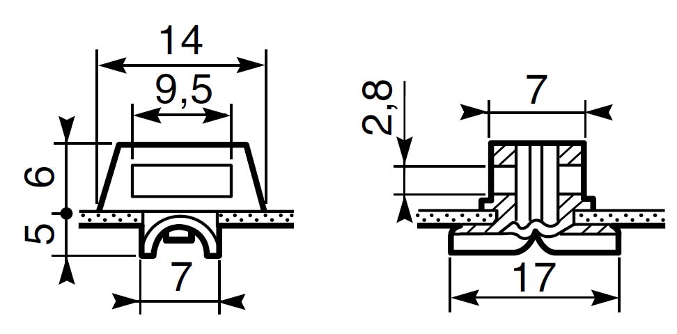Diametro del foro di fissaggio - 7 mm