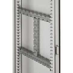 Traversa/montante universale 1000 mm multifunzione. Permettono la realizzazione di telai parziali all’interno degli armadi. Preposizionamento provvisorio prima del fissaggio definitivo mediante viti. Forature con passo 25mm predisposte per dadi in gabbia. In acciaio galvanizzato. Possono essere montanti sia in larghezza che in profondità o altezza.