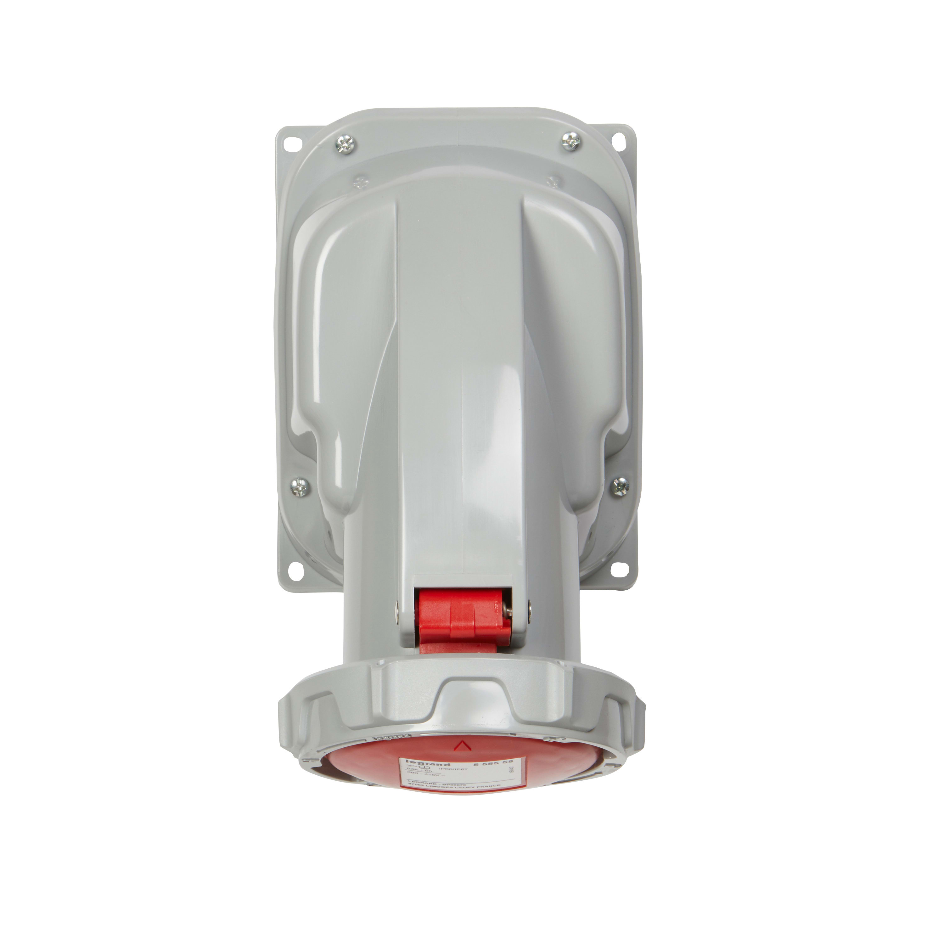 Presa per montaggio a parete 3P+T, IP66/67, IK09, In= 63A, Vn=380÷415Vac, rossa. Due angoli possibili (5° o 25°)