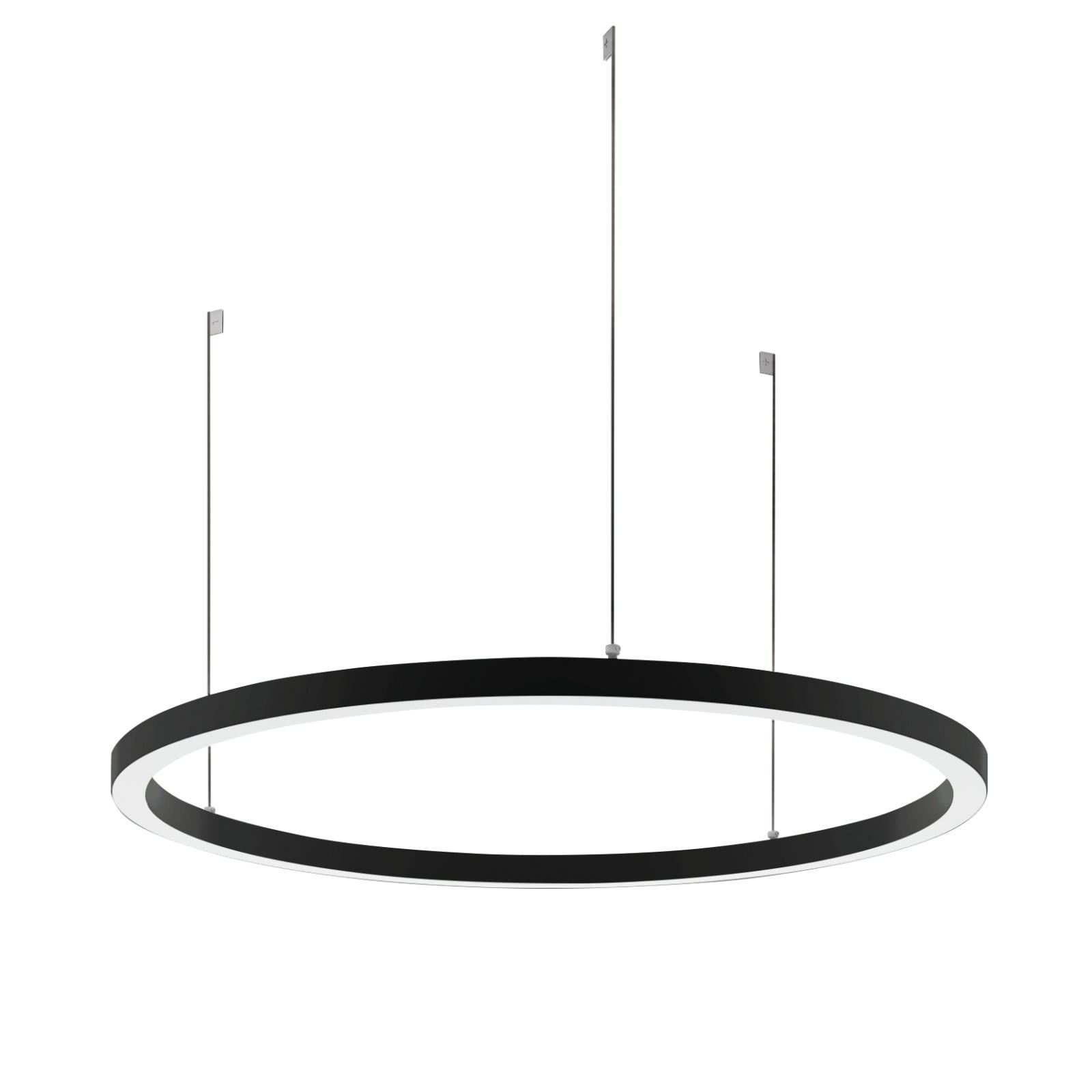 Sospensione a singola emissione per applicazione indoor. La sorgente luminosa LED, di colore bianco caldo, con distribuzione luminosa General Lighting, è composta da 210 LED topled, con una CCT 3000 K ed un CRI 80; il flusso luminoso della sorgente è di 5847 lm, con un'efficienza nominale di 129.9 lm/W.