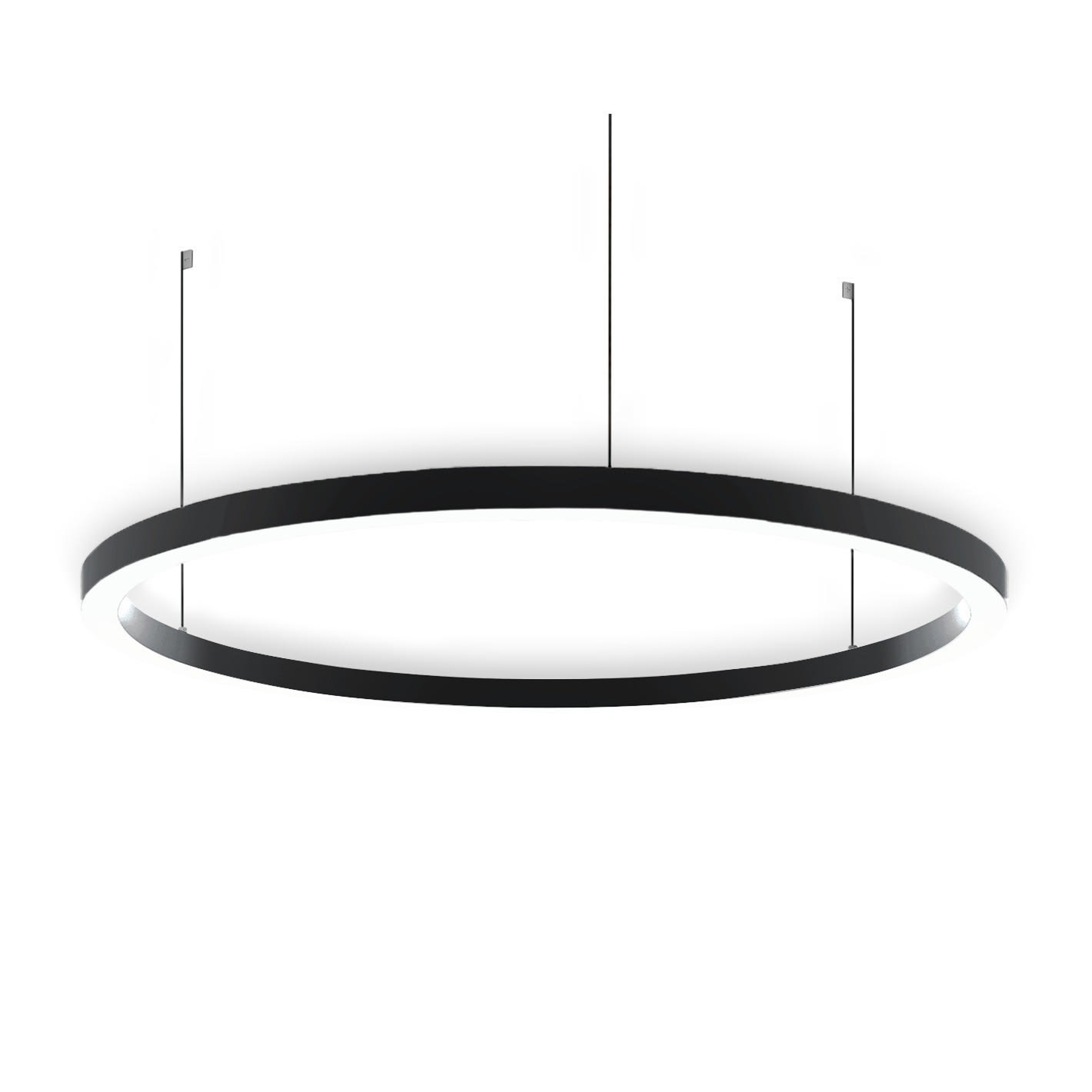 Sospensione a singola emissione per applicazione indoor. La sorgente luminosa LED, di colore bianco caldo, con distribuzione luminosa General Lighting, è composta da 336 LED topled, con una CCT 3000 K ed un CRI 80; il flusso luminoso della sorgente è di 9355 lm, con un'efficienza nominale di 133.6 lm/W.