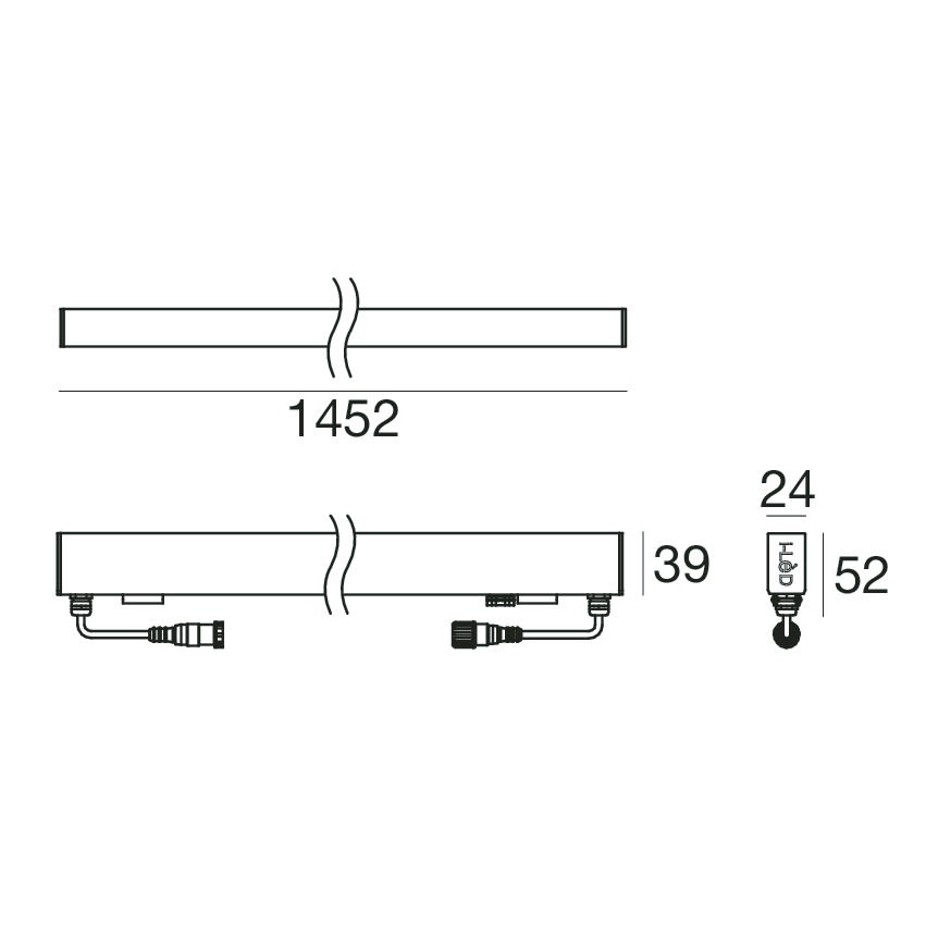 Elementi lineari a singola emissione per applicazione outdoor. La sorgente luminosa LED, di colore bianco caldo, con distribuzione luminosa General Lighting, è composta da 264 LED topled, con una CCT 3000 K ed un CRI 80; il flusso luminoso della sorgenteè di 2079 lm, con un'efficienza nominale di 109.4 lm/W. Il corpo dell'apparecchio, realizzato in policarbonato uv resistente, presenta una finitura di colore opalino; il diffusore è prodotto in policarbonato uv resistente. Il grado di protezione è IP67; il peso complessivo è di 1.45 kg. La potenza assorbita dall'apparecchio è di 19 W.