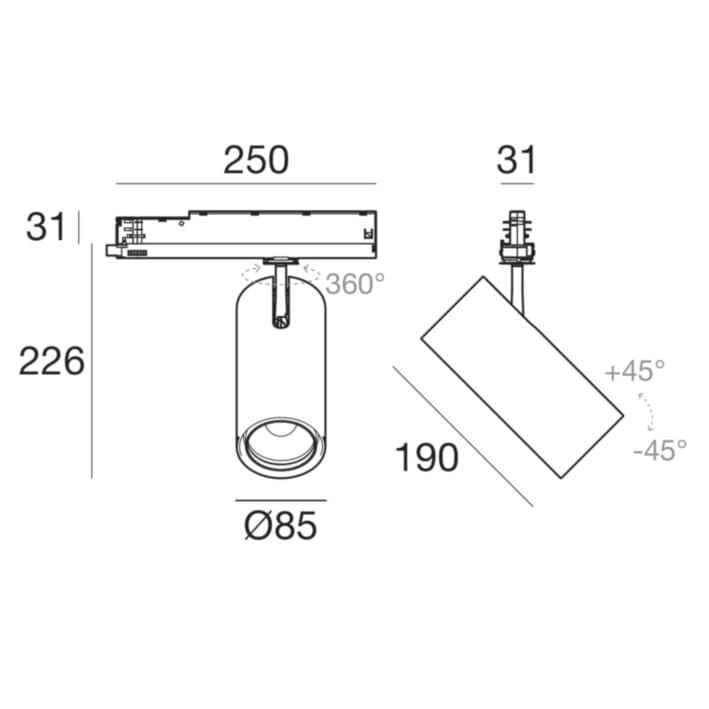 Proiettori a singola emissione per applicazione indoor. La sorgente luminosa LED, di colore bianco caldo, con distribuzione luminosa Wide Flood, è composta da 1 LED arrayled, con una CCT 3000 K ed un CRI 92; il flusso luminoso della sorgente è di 4117lm, con un'efficienza nominale di 121.1 lm/W.