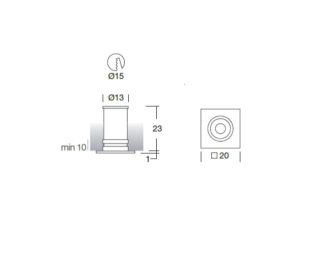 L'apparecchio presenta una classe di isolamento III ed èinstallabile a parete o soffitto, con foro tondo di diametro 15 mm (nel cartongesso).