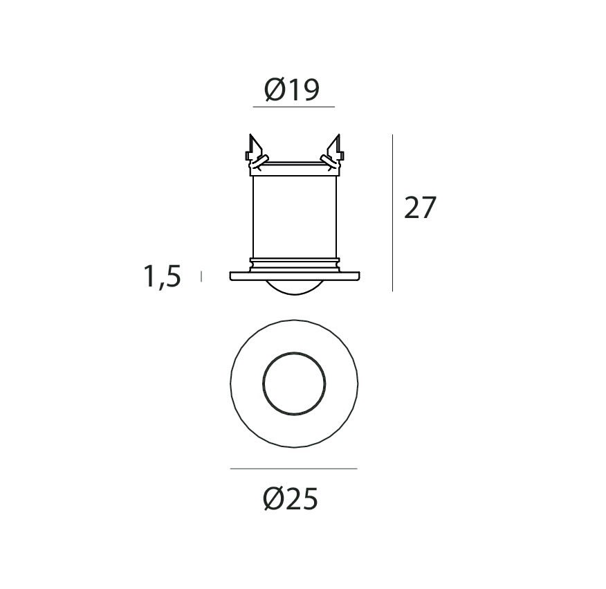 L'apparecchio presenta una classe di isolamento III ed è installabile a parete o soffitto, con foro tondo di diametro 20 mm (nel cartongesso).