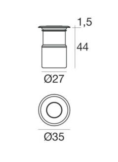 Il corpo dell'apparecchio, realizzato in ottone ot58, presenta una finitura di colore nichel, ottenuta tramite nichelatura galvanica + spazzolatura. Il grado di protezione è IP67; il peso complessivo è di 0.130kg. Il driver d’alimentazione non è fornito e deve essere ordinato separatamente.