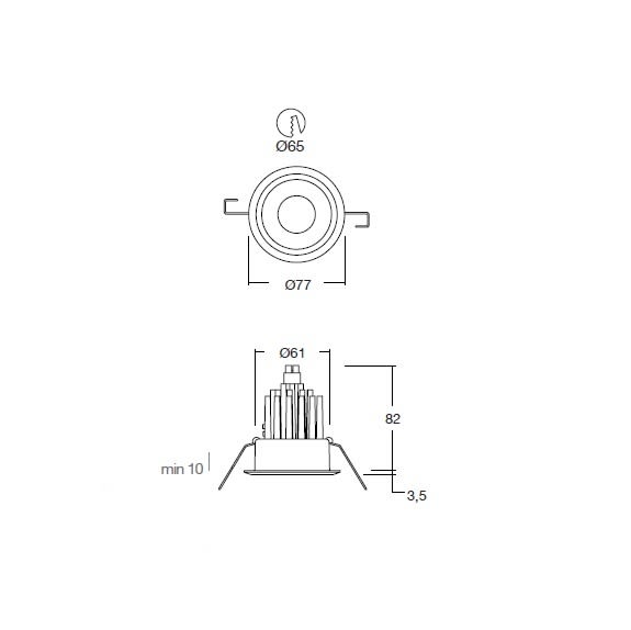 L'apparecchio presenta una classe di isolamento II ed è installabile a soffitto, con foro tondo di diametro 65 mm (nelcartongesso).
