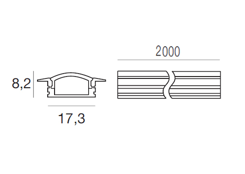 Kit: profilo da incasso 2m in anodizzato alluminio + diffusore opaline 2m + 2 tappi + 5 staffe.