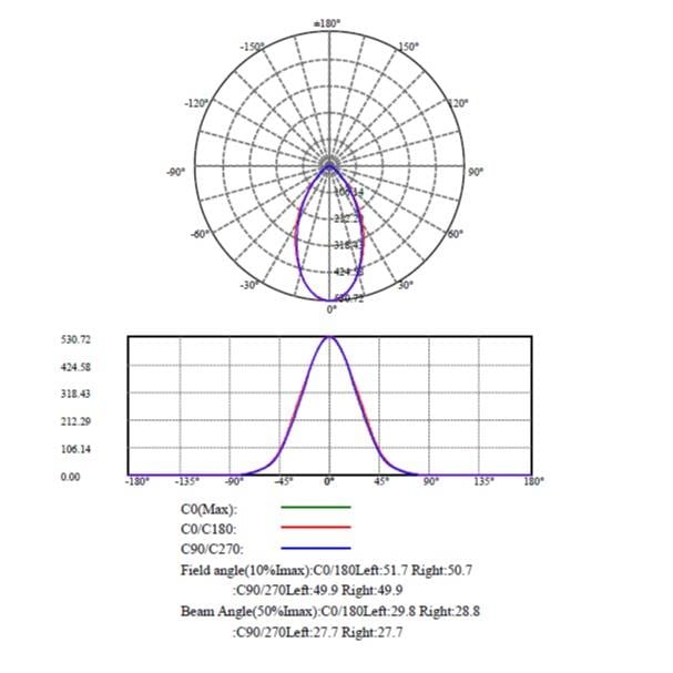 Mantenimento del flusso luminoso, durata operativa media di 50.000 ore a 25°C:
