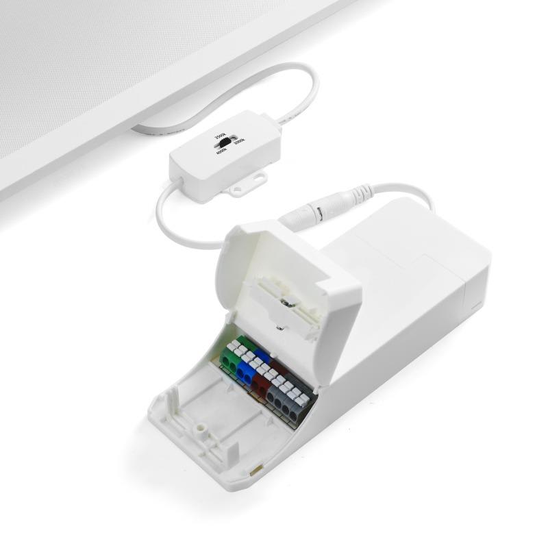 Pannello retroilluminato, 600x600, DALI-2, 32W, Dip Switch 3CCT 3000K/3500K/4000K, 3840lm, 120 lm/W, UGR<19, 220-240V, IP20, IK02, BA90, SDCM5(ANSI ), SDCM3, -20/+40?C, 50.000H (50.000h L80B10 per LED, 50.000H per driver), 5 anni di garanzia, driver esterno LDS, Samsung SMD 2835 LED, Classe II, bianco (RAL9016, opaco ), Diffusore microprismatico e corpo in alluminio+Piastra Posteriore SPCC, Cavo da 18cm, con switch, connettore DC, senza sfarfallio, ad incasso