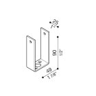 Soluzione alternativa al tradizionale interramento o al basamento palo post mediante staffa di fissaggio a scomparsa. Consiste nell’inserire il palo post sulla staffa preforata da 3mm, realizzata in ferro zincato a caldo per immersione. Accessorio non idoneo per pali post superiori a h. 1200.