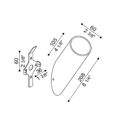Braccetto diametro 60 mm in Bayblend. Completo di kit di fissaggio a parete. Inclinazione 30°. Colore: Grigio antracite.