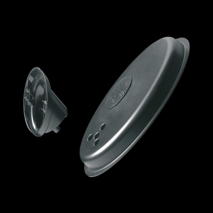 Kit in policarbonato composto da supporto e copertura apparecchio. Possibilità di montaggio verticale o orizzontale a parete o su palo (inclinato di 40° o in asse al palo). Braccetto per apparecchi ovali.
