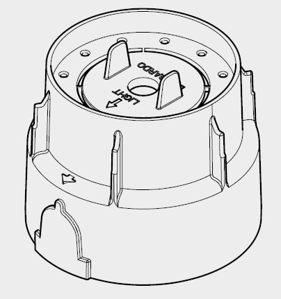 Armatura da incasso in termoplastico. Diametro: 136mm. Altezza: 112mm.