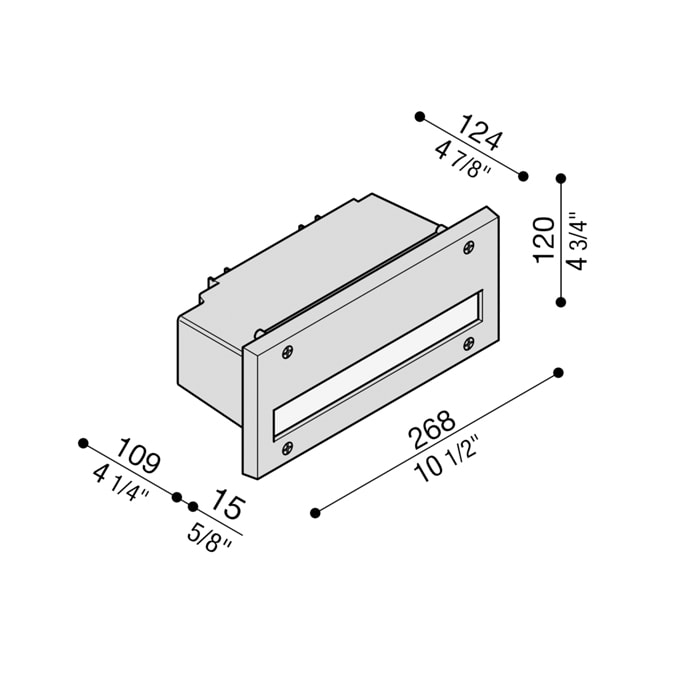 Adatto anche ad uso esterno. Base in policarbonato e diffusore in vetro temprato. Riflettore in alluminio tipo L2–1060. Guarnizioni in silicone. Doppio pressacavo PG 13 + tappo di chiusura per singola alimentazione. Viti imperdibili in acciaio inox A4 a testa esagonale ch.3. LED natural white, a richiesta colorazione LED 3000K. Alimentazione diretta 220-240V. Nessun rischio fotobiologico, RG0 gruppo di rischio esente (EN62471). Lampada: 24 LED 3000K 600 lm 4W real output lm 193.