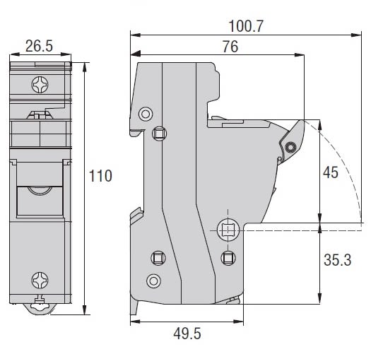 BASE PORTAFUSIBILI OMOLOGATA CURUS, PER FUSIBILI 14X51MM. CORRENTE NOMINALE 50A (690VAC), 1P. CON INDICATORE LUMINOSO. 1 MODULO