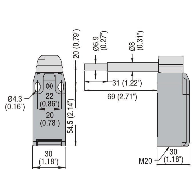 FINECORSA SERIE K, A CERNIERA, 1 INGRESSO DAL BASSO PER CAVO. DIMENSIONI SECONDO EN 50047, CUSTODIA PLASTICA, CONTATTI 1NA+2NC LENTO. ALBERO PIENO LUNGO CON RIBASSO.