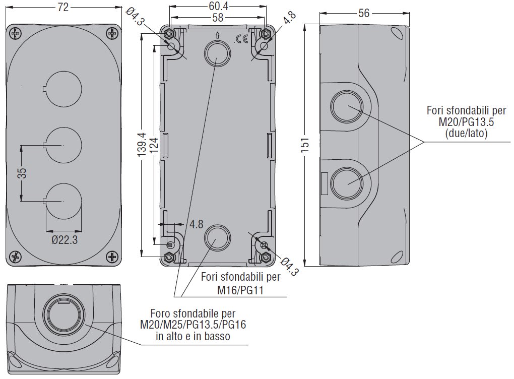 LOVATO - LOVLPZP3A8 PULSANTIERA GRIGIA 3 OPERATORI - LPZP3A8