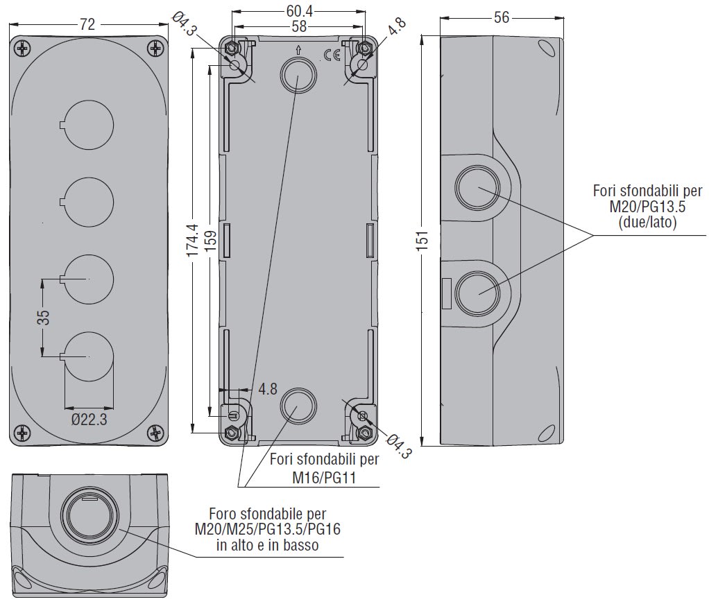 LOVATO - LOVLPZP4A8 PULSANTIERA GRIGIA 4 OPERATORI - LPZP4A8