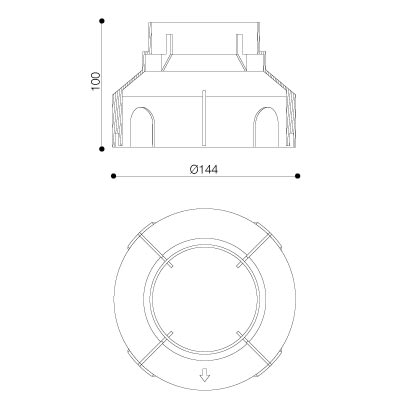 Accessorio: Controcassa a murare per apparecchi serie Lira 95. Caratteristiche: Corpo in tecnopolimero. Caratteristiche di installazione: Chiusura inferiore e superiore per agevolare la cementazione. Caratteristiche dimensionali: Controcassa cilindrica di dimensioni Ø144mm con profondità 100mm.