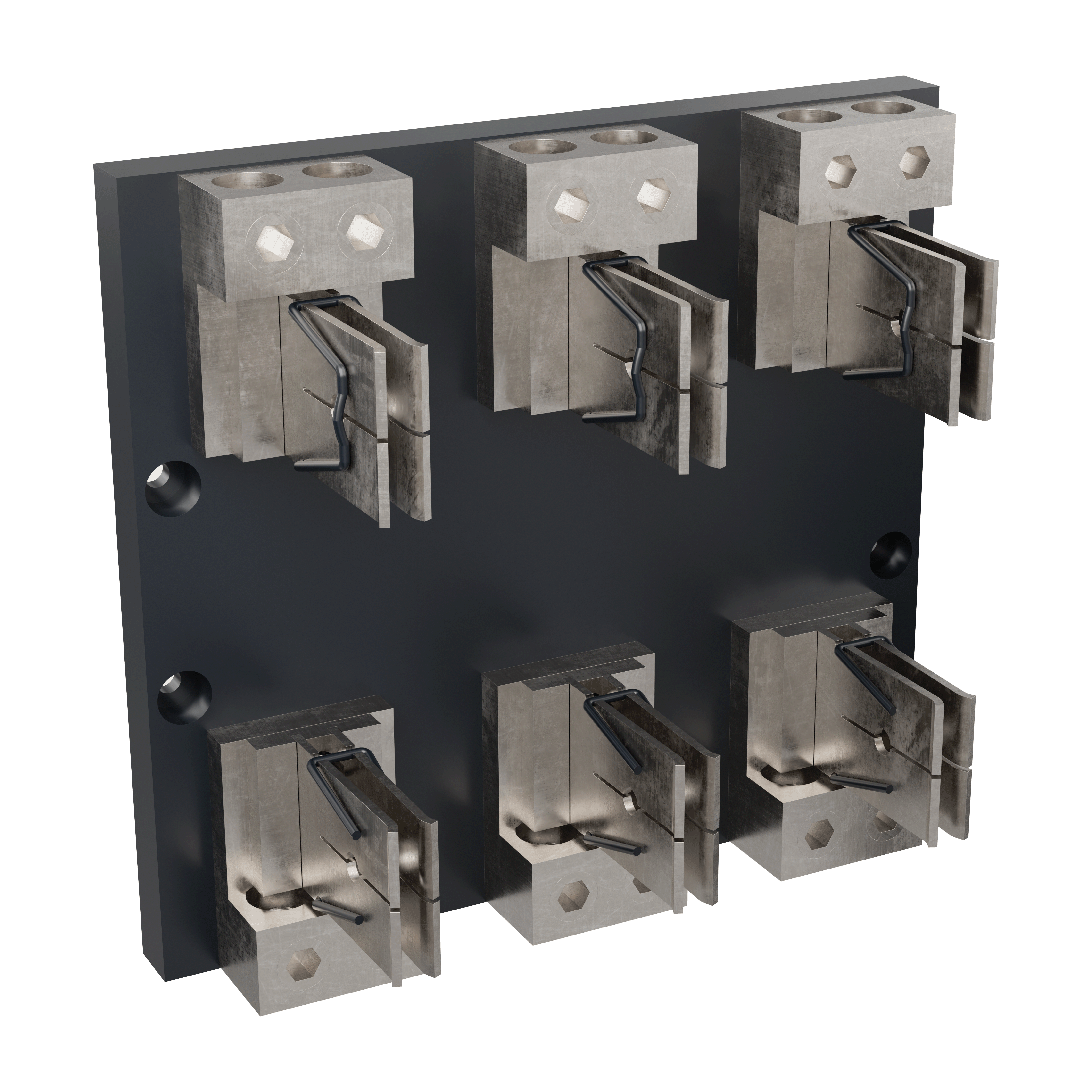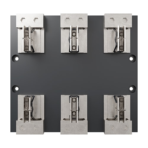 I connettori Mersen si adattano a unampia gamma di conduttori in rame o alluminio, a trefoli o solidi. Gli isolanti sono stampati in policarbonato riempito di vetro (GFPC) o fenolico con una rigidita dielettrica verificata superiore a 2500V. Tutti i morsetti per fusibili sono realizzati in rame stagnato ad alta conducibilita e progettati specificamente per fusibili di classe J a lamelle da 200-600A.
