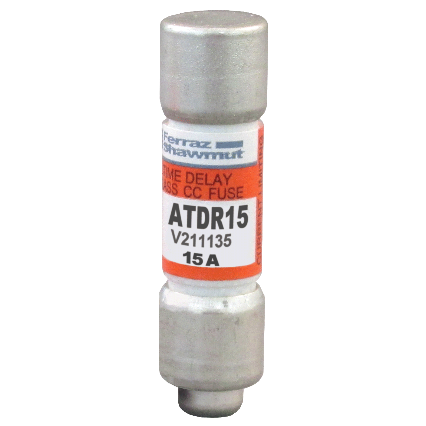 FUSIBILI UL / CSA A BASSA TENSIONE Classe CC ATDR - Classe CC - Ritardo di tempo Amp-Trap 2000 tempi di ritardo I fusibili a dimensione ATDR forniscono protezione IEC Type 2 "non danneggiata" ai componenti del circuito di derivazione e ai piccoli motori sempre più sensibili della vostra struttura - riducendo al minimo il rischio di danni causati da errori. I fusibili CC di classe ATDR offrono le migliori caratteristiche di ritardo di tempo nella loro classe con un'eccellente capacità ciclica perpiccoli carichi motore.