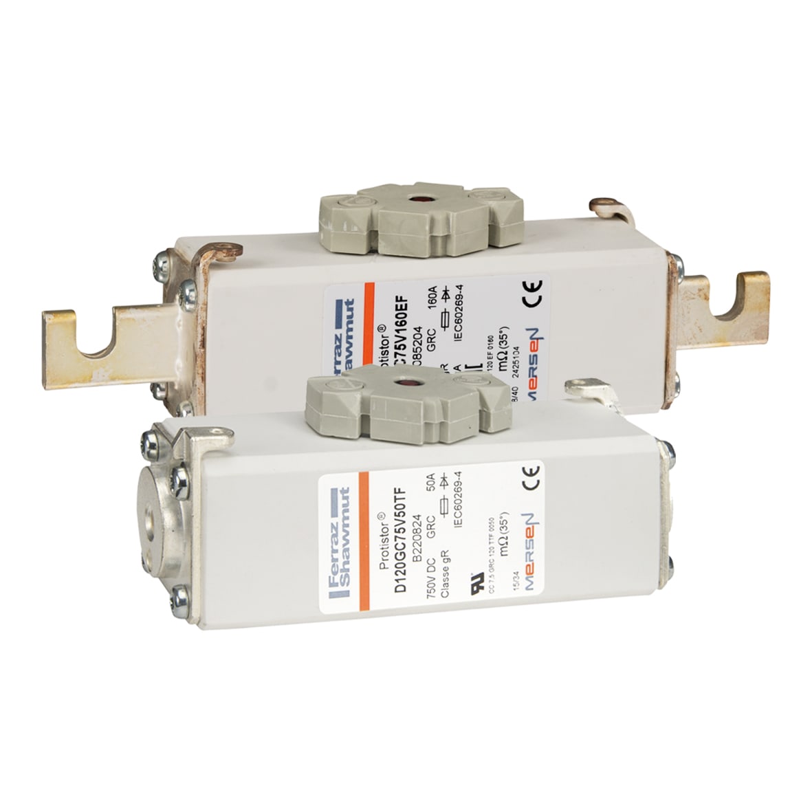 Le alte prestazioni dei fusibili c.c. di Mersen sono studiate per garantire una protezione eccellente ai circuiti elettrici ferroviari e ai circuiti ausiliari. Le cartucce di fusibili per semiconduttori c.c. sono state sviluppate per fornire le elevate prestazioni richieste dalle moderne apparecchiature in c.c.. Normalmente queste cartucce funzionano a temperature piu elevate rispetto ad altri tipi di fusibili. Il loro valore I?t e piu basso cosi da minimizzare i danni ai componenti in caso di corto circuito, hanno minori perdite di potenza e durano piu a lungo.