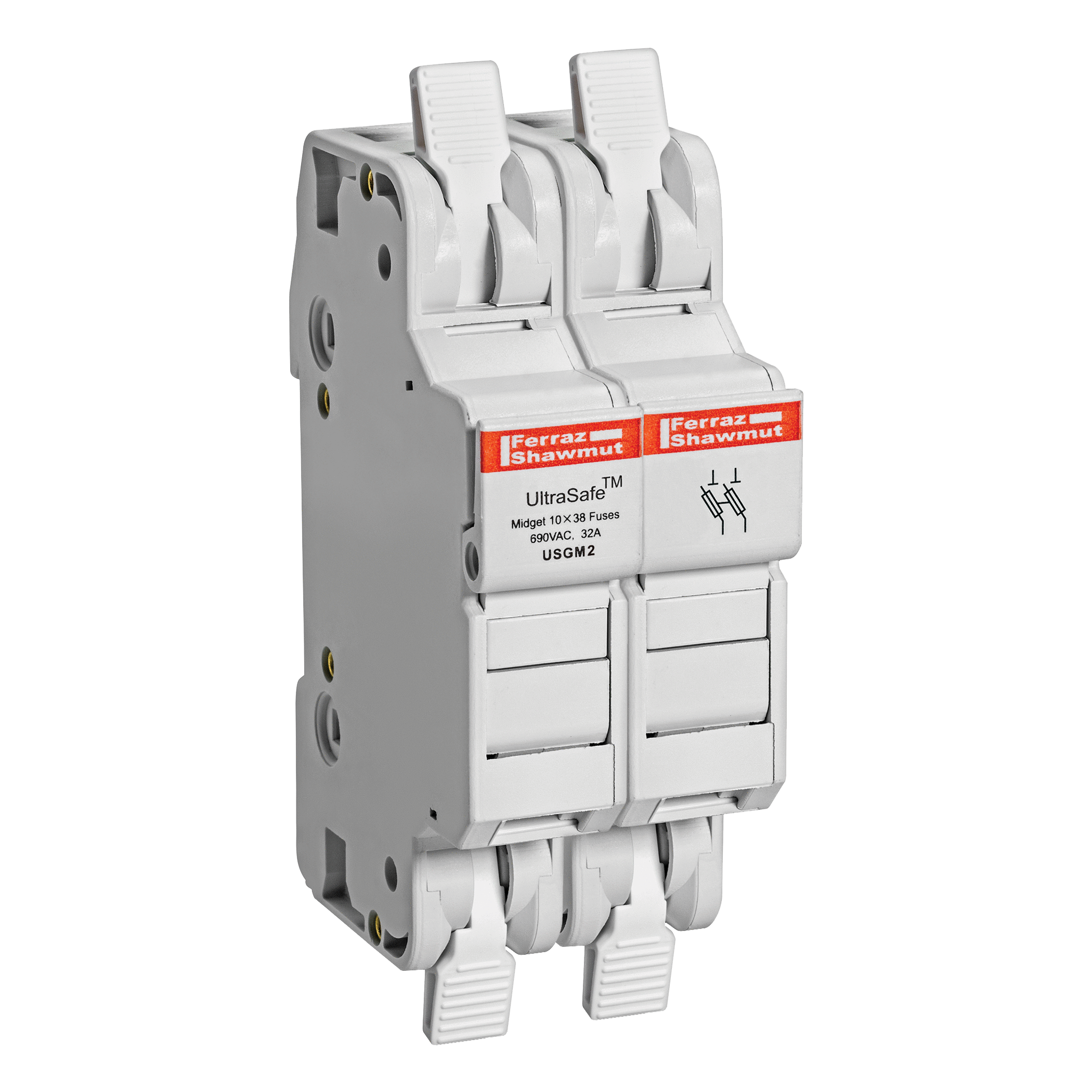 I portafusibili Mersen della serie USGM offrono la soluzione più semplice, rapida e affidabile disponibile sul mercato. Mersen è il primo produttore a integrare la tecnologia di terminazione del cavo senza vite, con pressione a molla in un portafusibili,mettendo a disposizione dei propri clienti il meglio di entrambe le tecnologie. Ora potete apprezzare i vantaggi combinati di sicurezza, facilità duso, rapidità e affidabilità dei portafusibili UltraSafe e della tecnologia di pressione a molla.