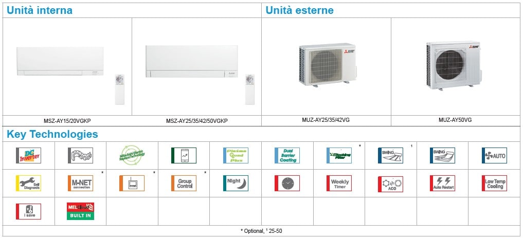 Gas refrigerante R32 a basso impatto ambientale Finitura Matt e design elegante Elevata efficienza energetica stagionale Timer settimanale Tecnologia Dual Barrier Coating Self Clean Mode per una migliore qualità dell'aria Controllo Wi-Fi MELCloud integrato