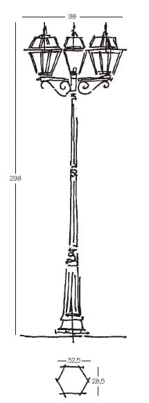 NOBILE ITALIA - NOB2056/11/02/NE LAMPIONE H298 3 LUCI OTTO VETRI NE - 2056/11/02/NE