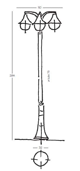 NOBILE ITALIA - NOB2083/11/06/NA LAMPIONE H284 3 LUCI LAMPARA GRANDE RAME - 2083/11/06/NA